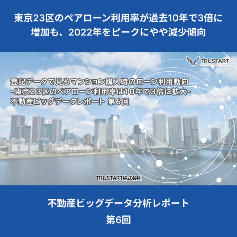 今回のレポートでは、マンション購入時における住宅ローンの利用傾向や、ペアローン利用と考えられるマンション購入の傾向を登記データから調査した結果をご紹介します。