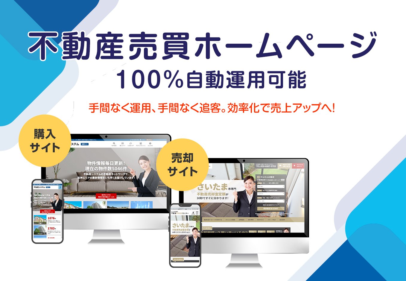 コストは減らす。売上は増やす。低価格で実現する次世代の売買HPは、自動運用で物件掲載を強化し、機会損失を防ぎ反響数アップに繋げます。