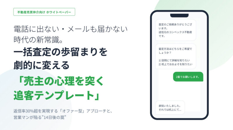 営業・追客ノウハウ一括査定の歩留まりを劇的に変える『売主の心理を突く追客テンプレート』その売却反響、見込みなしで終わらせていませんか?“そのうち客”を受託に変える方法 一括査定の反響に、すぐ電話をかけても繋