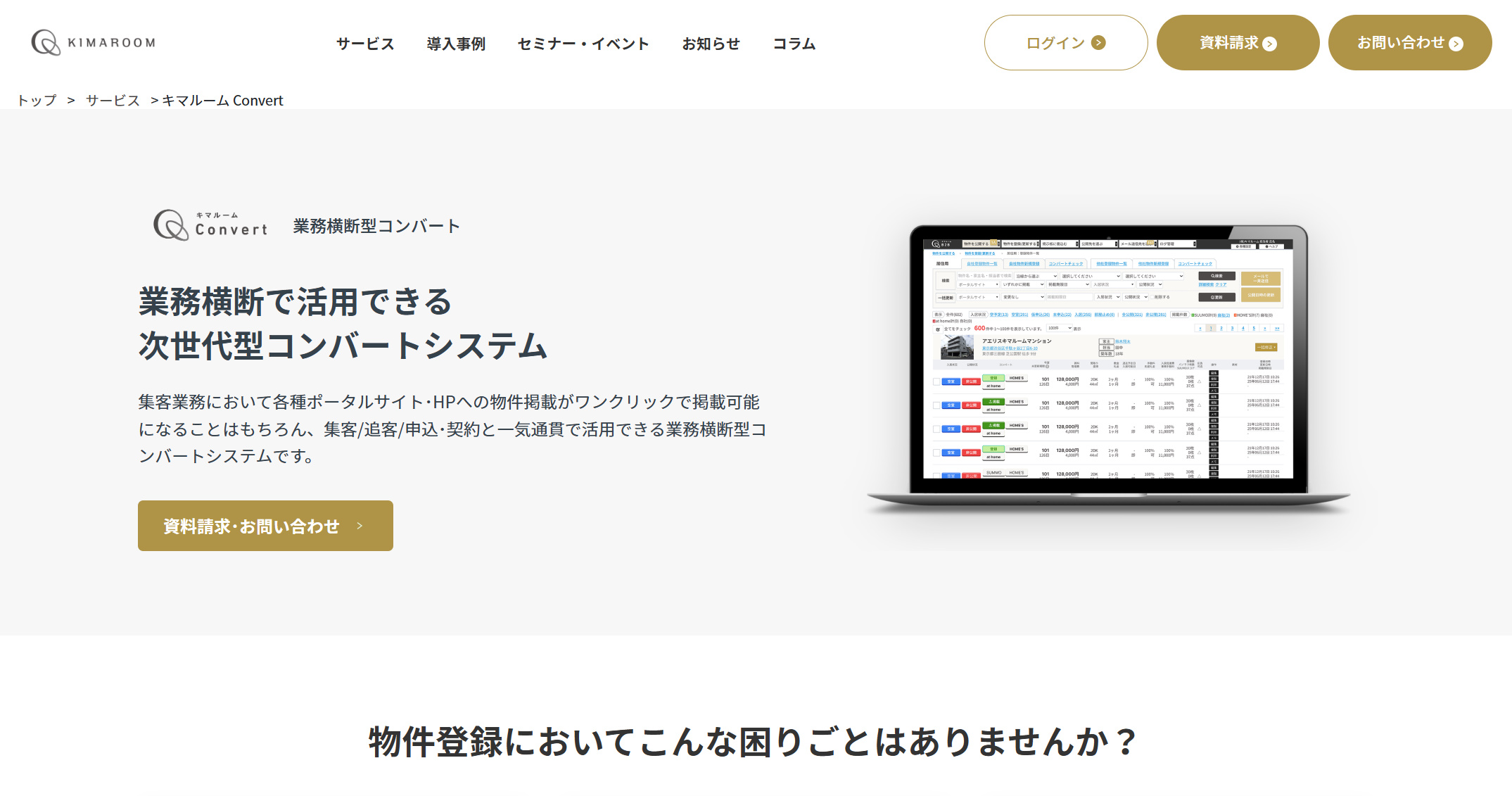 株式会社キマルームが提供する『キマルーム Convert』は賃貸専門の物件コンバーターサービスです。