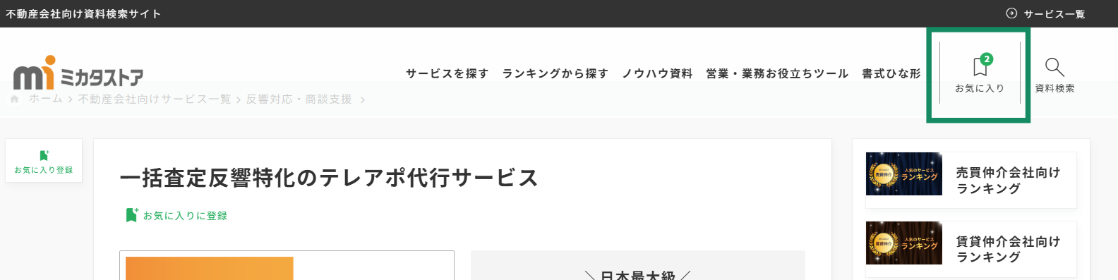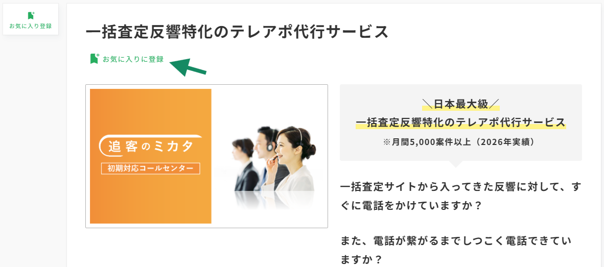 気になるサービスがあったら「お気に入り登録」をクリック
