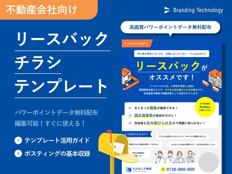 「訳あり物件」募集をご案内するA4三つ折りポスティングチラシ・DM用テンプレートと、すぐに使える活用ガイドをセットで無料配布しております。