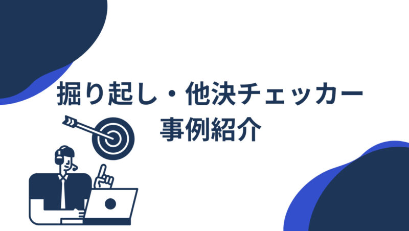 経営・仕組み化ノウハウ一括査定の掘り起こしをした事例集(他決チェッカーの導入事例)掘り起こしや長期追客が大事とはいうものの、 今さら連絡したところで… そんな風に思っていませんか? しかし実際に掘り起こし架