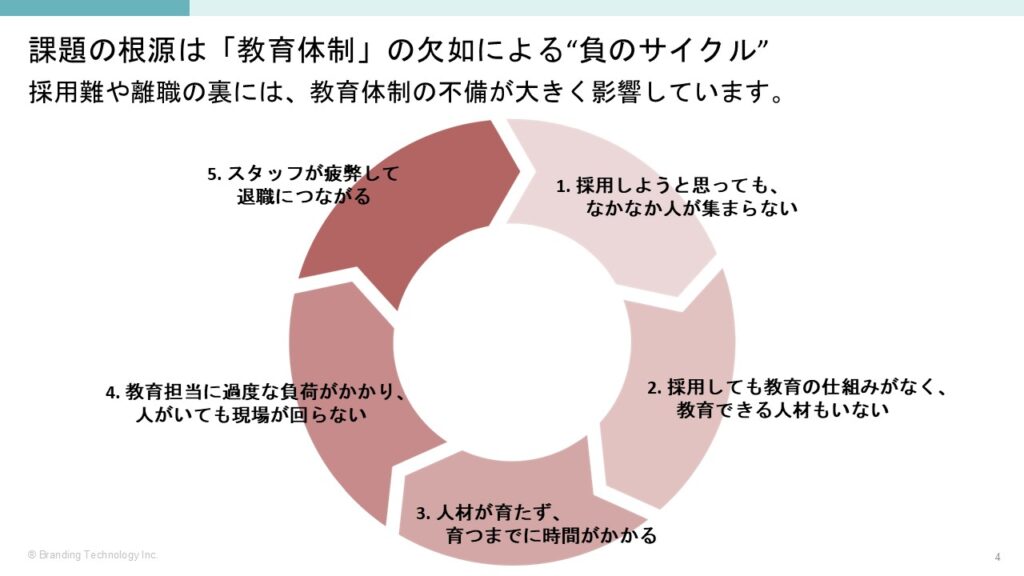 現役のプロ講師による300本以上の実践的な動画研修で、「教える人がいなくても自発的に育つ仕組み」を提供し、企業の教育DX化を支援します。