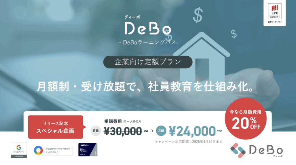 月額制・受け放題で、社員教育を仕組み化!不動産業界特化型eラーニング「DeBoラーニングパス」