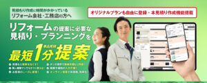 業務基盤・運用改善住まいのリフォームシミュレーター「イエプロ」●リフォームの見積書・プランニングを最短1分提案!素早い提案で受注率をアップできる ●汎用性の高いリフォームプランの内容営業支援システム入居者/オーナー対応