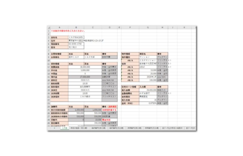 そして、案内・契約書作成にも活用頂ける項目もご用意しております!