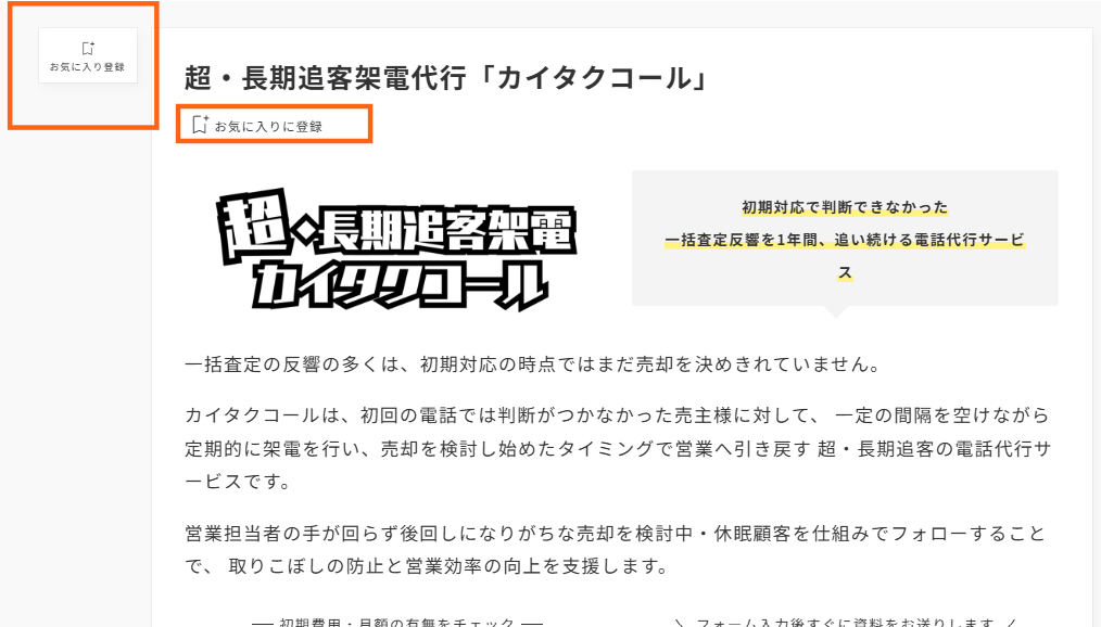 気になるサービスを保存できる「お気に入りボタン」を新たに追加しました。各サービスページでお気に入り登録を行うことで、後からまとめて確認でき、複数サービスの比較・検討をより効率的に行っていただけます。