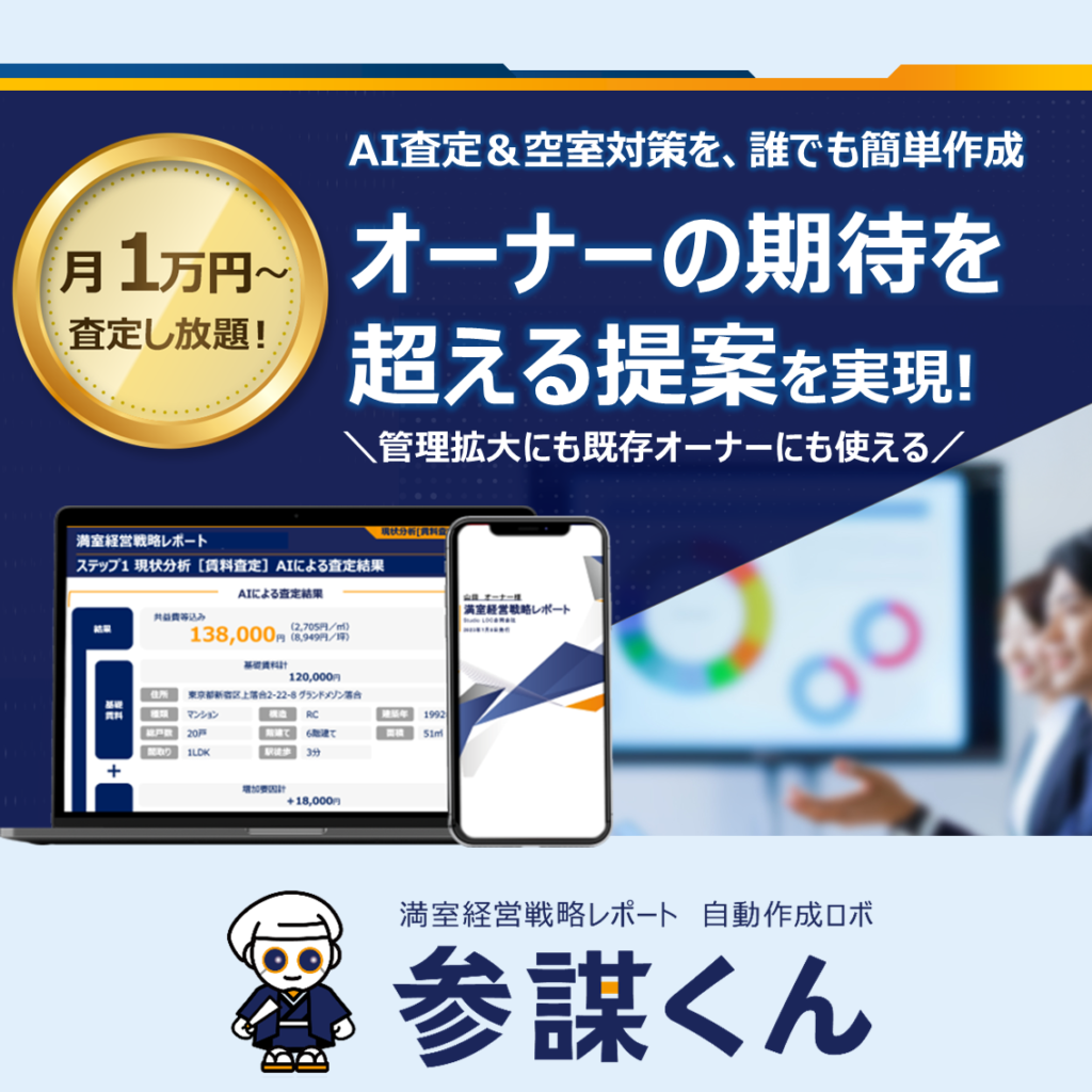 「参謀くん」とは、不動産会社向けのAI査定・オーナー提案ツールです(業界初)
