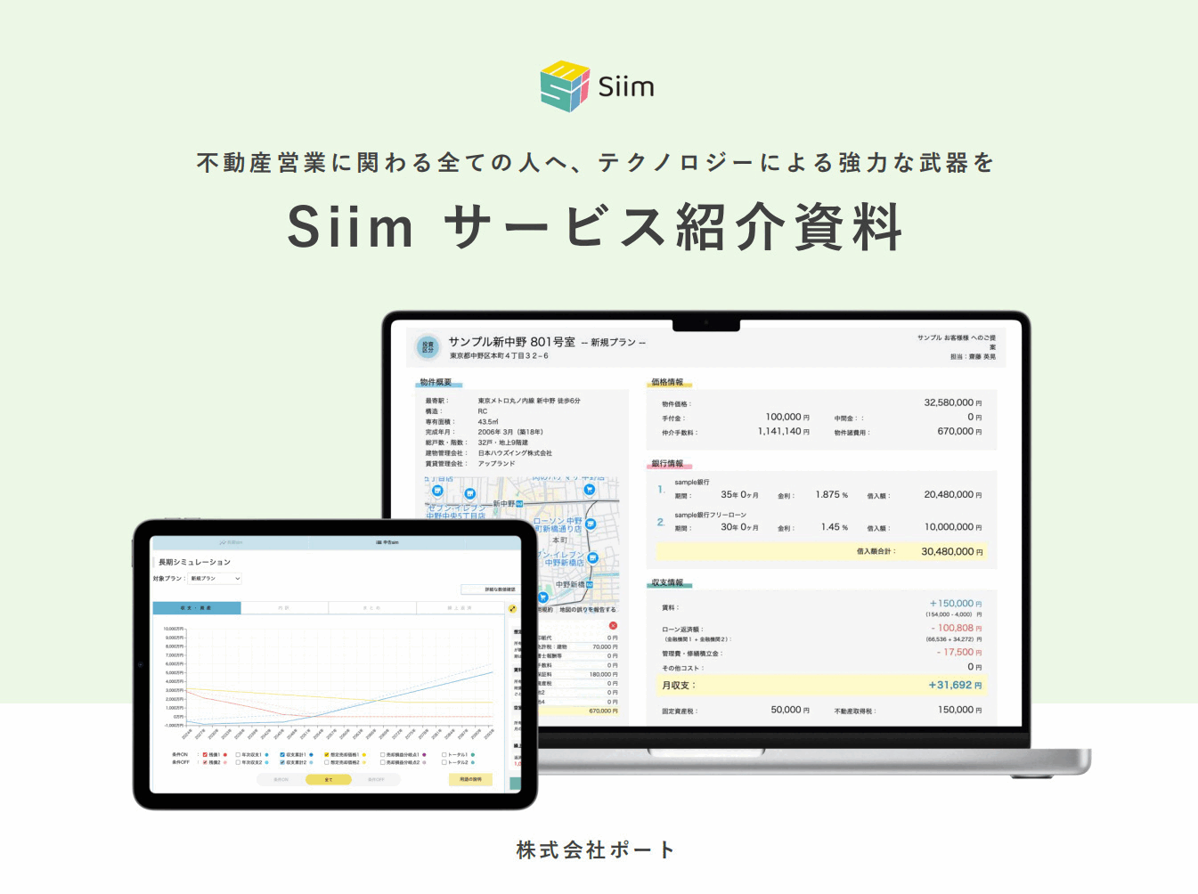 Siim(シーム)は、販売資料をたった1分で作成できる不動産仲介業者向けの営業支援ツールです。
