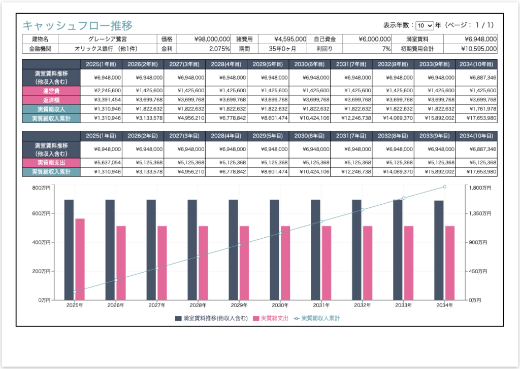 長期シミュレーション・一棟物件を解析する様々な機能を搭載
