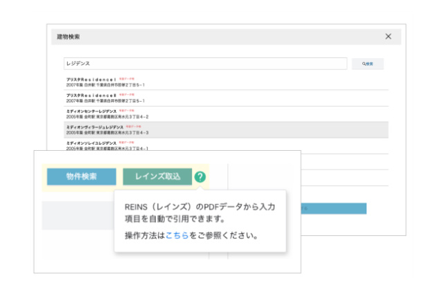 REINSのデータを読み込むことで対象物件のデータを瞬時に作成、手間を大幅にカットします