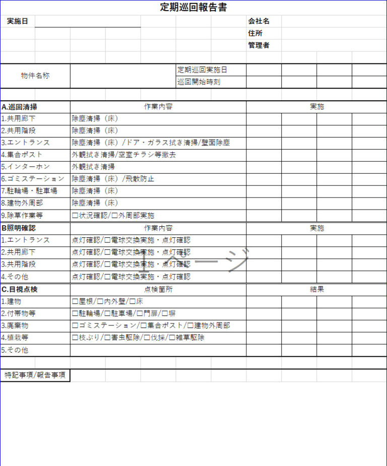 定期巡回報告書テンプレート(ひな形)