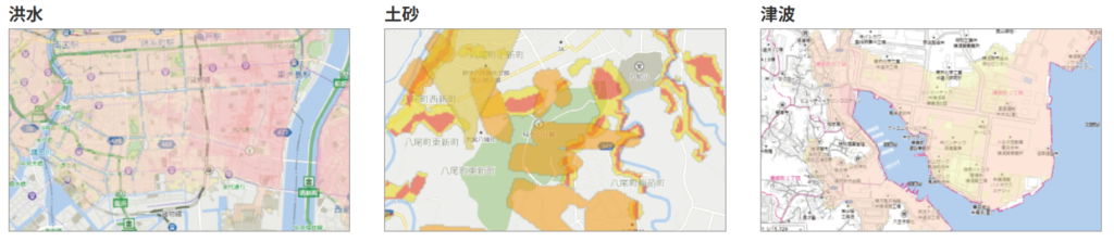 ハザード情報が住宅地図上で確認できる
