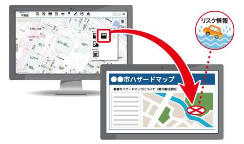 また、画面上から該当する自治体のハザードマップ掲載ページにダイレクトにアクセスできるため、重要事項説明の準備もスムーズに行えます。