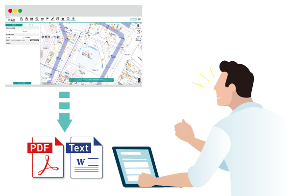 登記情報はPDFに加え、テキストデータでも取得ができ、欲しい情報を切り貼りできます。